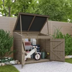 Le revêtement thermolaqué gris anthracite se fondra discrètement dans tout type d’aménagement extérieur et procure à l’abri une durabilité exceptionnelle. Cet abri ne craint pas les intempéries, et est prévu pour être laissé en extérieur tout au long de l’année.