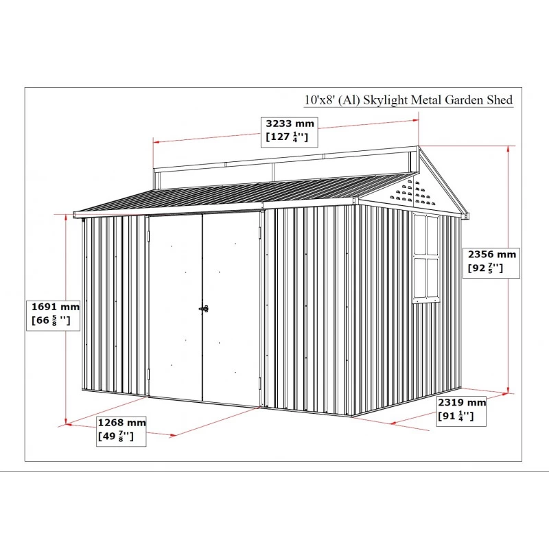Abri De Jardin En Aluminium Gris Avec Puits De Lumière 7,27m² + Kit Fondation – DURAMAX
