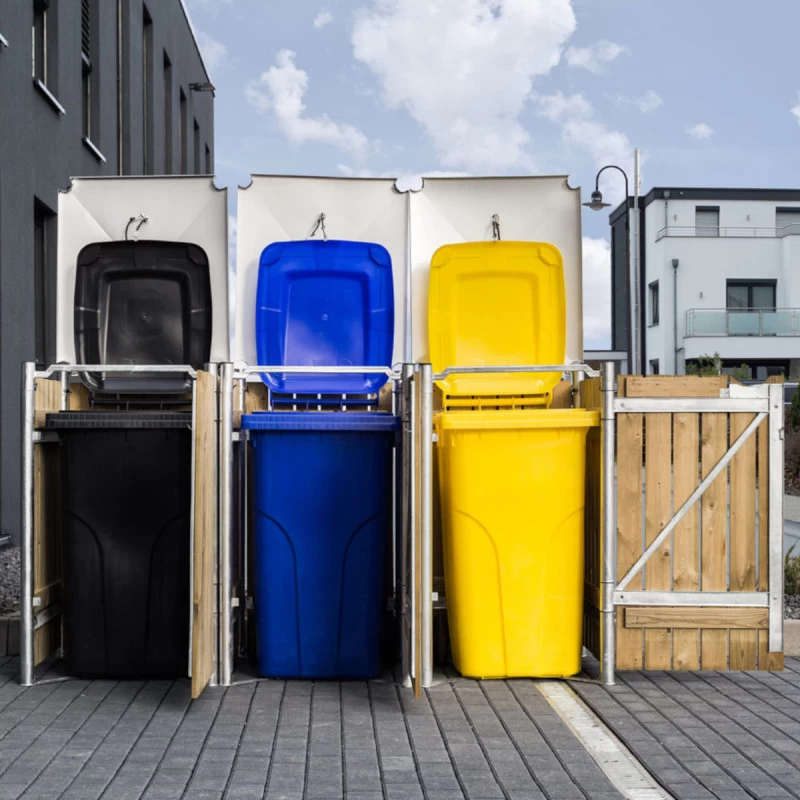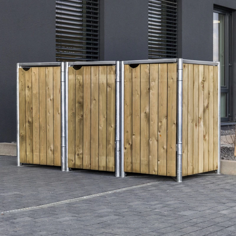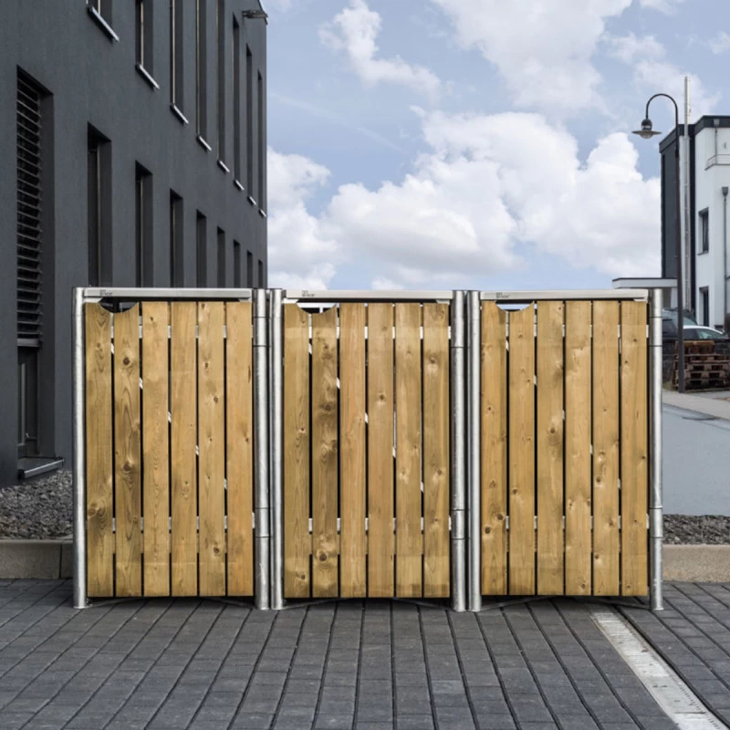 Cache-poubelle 3 Compartiments Müllbox En Bois Traité Naturel 3x140L – HIDE