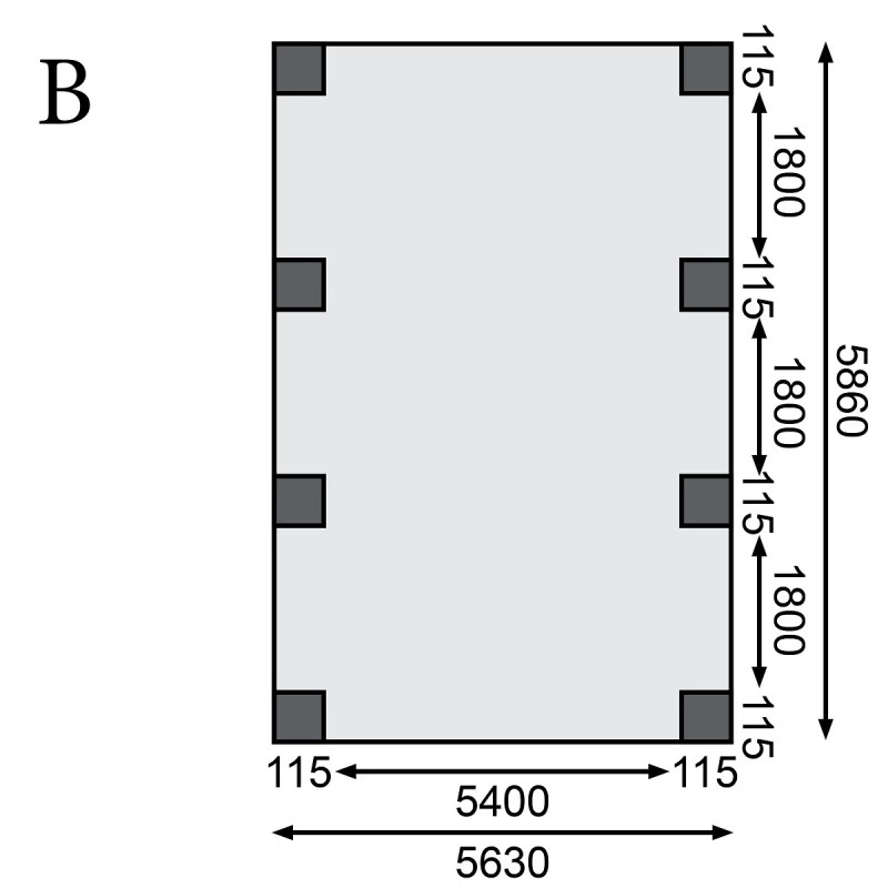 Dimensions intérieures (LxP) : 540x563cm